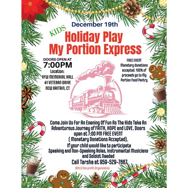 Come out and support the kids as they take you on an adventurous journey on the MY PORTION EXPRESS, Doors open at 7:00PM